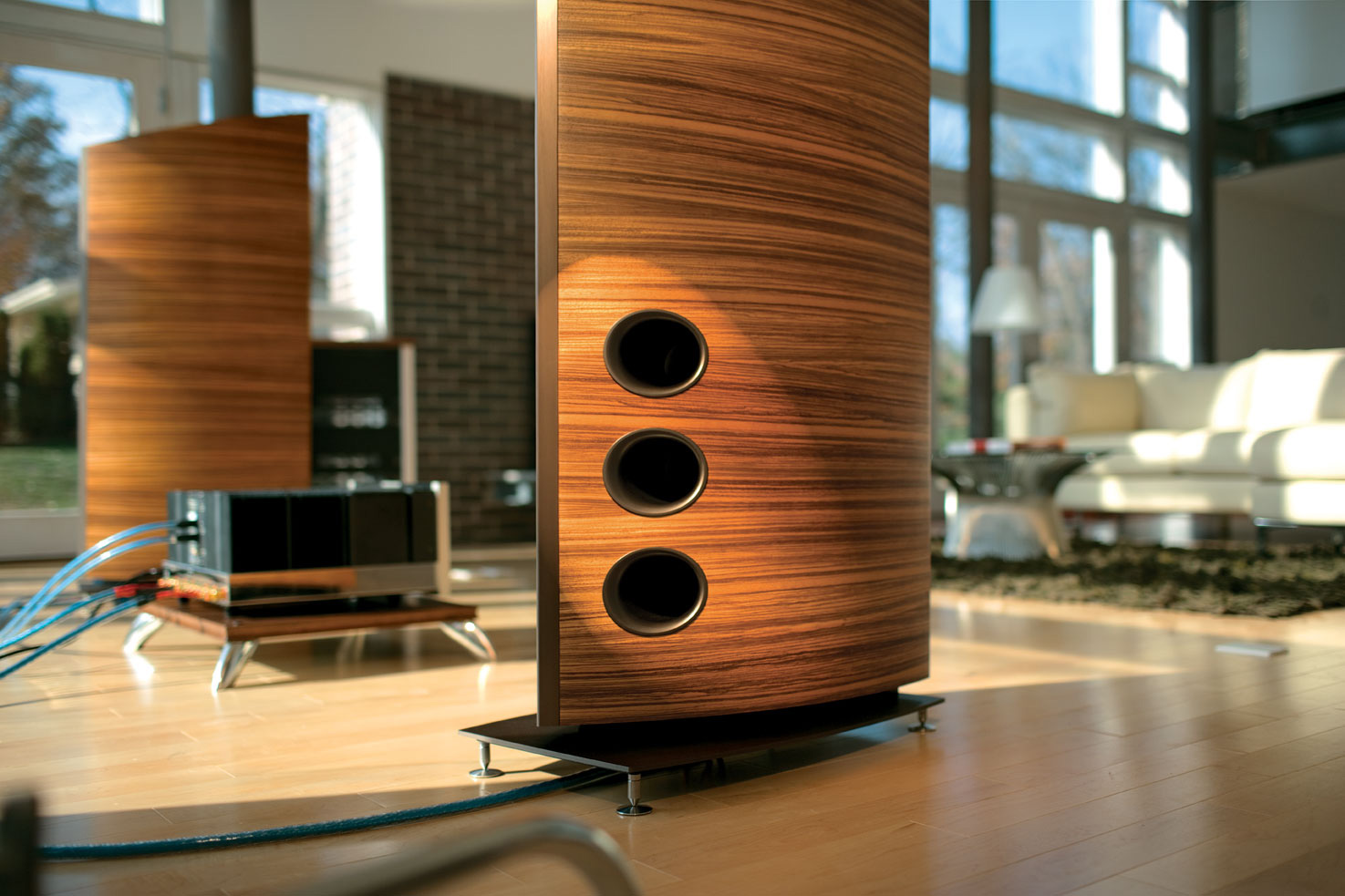 Bên cạnh củ loa tweeter đầy ấn tượng thì củ loa midrange có đường kính lớn 114 mm, được làm bằng aluminum cũng được thiết kế dạng họng kèn với góc tỏa 90 x60. Nhờ vậy loa midrange này có thể tái tạo âm tần trung mượt và trung tính hơn. Còn phía dưới là ba củ loa bass lớn có đường kính 229 mm, màng loa bass được làm bằng aluminum và Rohacel với độ nhẹ tuyệt đối và tương đối cứng sẽ đem đến một chất âm bass mạnh và sâu hơn.