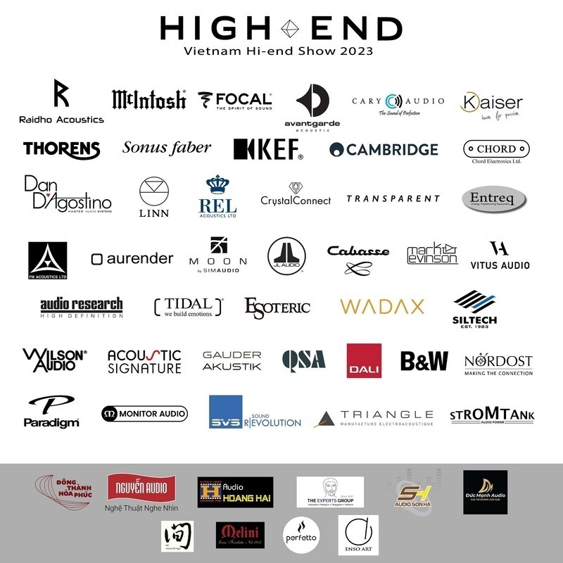 Năm nay, sự kiện Vietnam Hi-end Show 2023 có sự góp mặt của hàng trăm thương hiệu audio lớn trên thế giới, hứa hẹn mang đến những trải nghiệm tuyệt vời và đây cũng được xem là cơ hội để audiophile có thể khám phá các sản phẩm mới nhất trong lĩnh vực âm thanh cao cấp đang dẫn đầu xu hướng công nghệ hiện nay. Có thể kể đến hàng trăm thương hiệu audio lớn từ khắp nơi trên thế giới quy tụ về đây. Những cái tên nổi bật không thể thiếu đó chính là McIntosh, FM Acoustic, Tidal, Wadax, Gauder Akustik, Avantgarde Acoustic, Raidho, Sonus Faber, Wilson Audio, Dali, Cary Audio Design, Nordost...